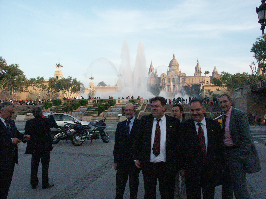 La visita se inició con la recepción y recogida por una delegación de la Junta Directiva del Gremi a las 5 de la tarde del Sábado, de los compañeros italianos en el mismo aeropuerto y su trasladó al hotel de destino, para posteriormente ofrecerles un pequeño tour turístico que en poco más de dos horas intentó mostrarles algunas de las facetas más representativas de Barcelona. La suerte de ser sábado tarde, permitió que nuestros compañeros pudieran contemplar esa maravilla de luz música y color que representan las Fuentes Mágicas de Montjuïc embajadoras de Barcelona en el mundo.