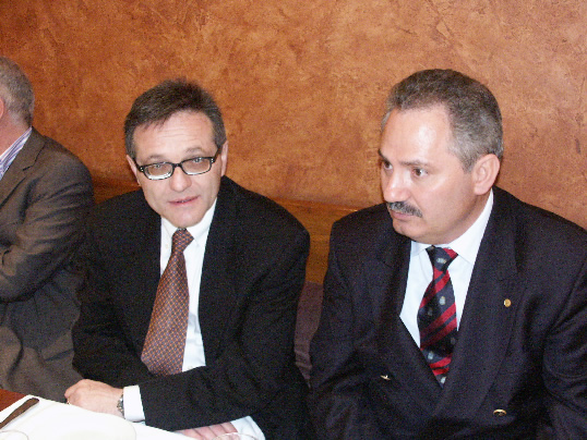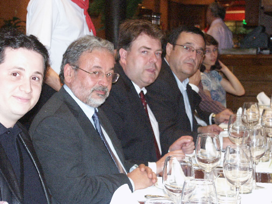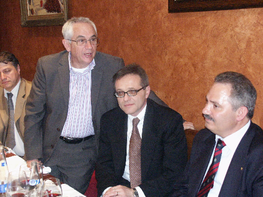 A las puertas del restaurante, la Junta Directiva del Gremi de Tintorers, encabezados por su Presidente Sr. Antonio Puértolas, recibió a los miembros de la delegación Italiana. Después de un cordial saludo se procedió al desarrollo de la cena que el Gremi ofreció a los miembros del Confartigianato de la Lombardía. Una vez concluida la misma, el Vicepresidente del Gremi Sr. Jordi Muntané, tomó la palabra para presentar el acto, dar la bienvenida a la expedición italiana, y leer una carta de apoyo al encuentro del regidor de Promoció Económica del Ajuntament de Barcelona y segundo teniente de alcalde Sr. Jordi Portabella. Seguidamente tomó la palabra nuestro Presidente para remarcar la importancia de contactos y reuniones de este tipo con asociaciones de tintoreros de otros países de la Unión Europea, en el sentido de la necesidad de abordar conjuntamente problemáticas comunes y aunar criterios de acción común ante los difíciles retos que se plantean al sector en el futuro próximo. El Presidente del Confartigianato de la Lombardía Sr. Stefano Locorotondo, en su alocución expresó su gratitud y la de todos sus compañeros por la exquisita hospitalidad recibida, y remarcó el beneficio y la importancia de dichos contactos para ambas asociaciones y su admiración por el trabajo desarrollado por el Gremi de Tintorers en el Plan de Dinamización Sectorial.