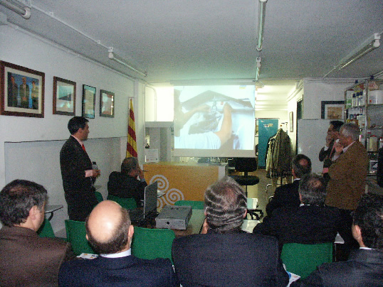 Se proyectó un video Corporativo de imagen y de las acciones más destacadas realizadas por el Gremi en los últimos años, como representa la gran apuesta por la formación técnica y profesional mediante innumerables cursos de formación y reciclaje tanto para personal como para empresarios. Con especial atención se siguió la explicación de la gran sintonía de las relaciones del Gremi con las administraciones tanto locales como autonómicas y con instituciones empresariales como Pimec. Al finalizar el visionado del video corporativo, el Presidente del gremi Sr. Puértolas tomó la palabra para explicar y exponer con detenimiento y detalle la situación actual, así como todos los procesos y pasos necesarios para la creación y desarrollo del Plan de Dinamización Sectorial y su faceta más ambiciosa plasmada en el proyecto “La tintorería del futuro” conocido popularmente como los TiB´s.