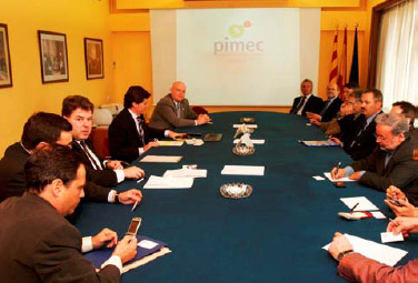 Fuimos recibidos por el responsable de protocolo de Pimec Sr. Joaquín Vilanova, quien nos acompañó hasta la sala de Juntas de la entidad, donde fuimos recibidos por el Secretario General de Pimec Sr. Antonio Cañete y por el Presidente de Pimec-ComerÇ Sr. Alex Goñi.