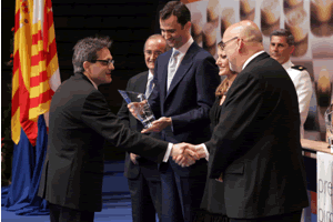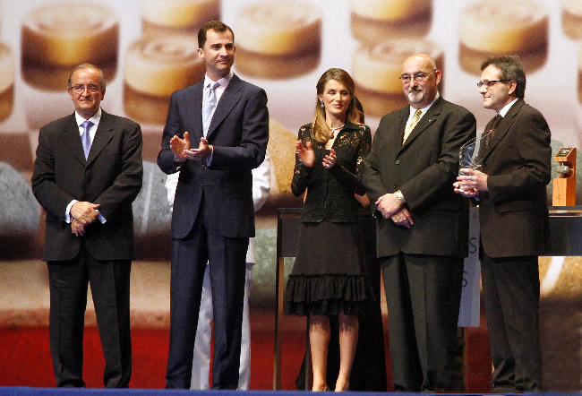 S.S.A.A. Reales, los Príncipes de Astúrias y el Presidente de PIMEC, entregan el Galardón PIMES a la Mejor Iniciativa Comercial Colectiva al Presidente del Gremi de Tintorers i Bugaders de Barcelona, Sr. Antonio Puértolas.