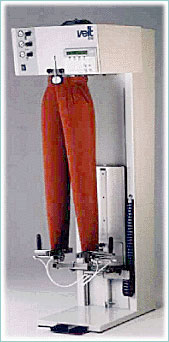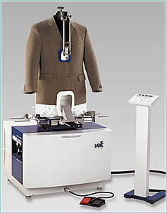 Pese a las refinadas técnicas actuales de plancha y acabado, los géneros tratados con agua suelen deformarse normalmente más que otros géneros comparables sometidos previamente a tratamiento con disolventes orgánicos. Con una técnica especial de acabado se consigue devolver en óptimas condiciones la forma externa a las prendas de vestir. Junto a las mesas de plancha plana existentes hoy día en las modernas empresas de limpieza de textiles, existen máquinas con una técnica integrada de absorción y soplado. Se han acreditado prácticamente como un importante complemento las planchadoras de pantalones y las máquinas de acabado de forma para las americanas y abrigos. Ambos equipos funcionales facilitan, gracias al vapor y al estirado bajo control, la tarea de compensar el encogimiento por relajación de los guardarropas limpiados con agua. El rematador de la forma devuelve ésta a las complicadas zonas de la solapa y espalda de las americanas, consiguiéndolo en una sola operación, lo que contribuye a una decisiva reducción de los costes de inversión que, de lo contrario, resultarían excesivos para el acabado en la limpieza húmeda.