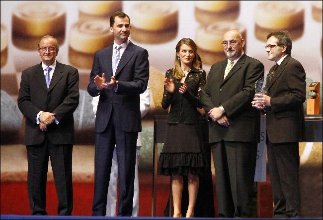 S.S.A.A. Reales, los Príncipes de Astúrias y el Presidente de PIMEC, entregan el Galardón PIMES a la Mejor Iniciativa Comercial Colectiva al Presidente del Gremi de Tintorers i Bugaders de Barcelona, Sr. Antonio Puértolas. |