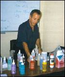Algunas manchas se vuelven solubles después de una determinada acción química. Muchas sombras y restos de manchas de color se pueden eliminar totalmente por reacción química. La más normal es el blanqueo. Una vez blanqueada una mancha hay que eliminar los restos de producto de blanqueo con la pistola de agua.