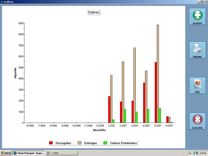 Su área de trabajo está formada por una columna vertebral de ocho temas: Procesos diarios, Carga de trabajo, Consultas, Facturación, Listados, Estadísticas, Utilidades y Empresas. Cada uno de los temas dispone de multitud de opciones relacionas con las que nos será muy fácil adaptarnos. Pero si ya en opciones es rico, no hay que minimizar elogios para la interfaz y el área de trabajo. Se trata de una de las más cómodas que podamos esperar, incluyendo iconos escalables, dibujos muy orientativos y la siempre difícil tarea de compaginar tamaños grandes con efectividad, que en este caso está perfectamente resuelta.